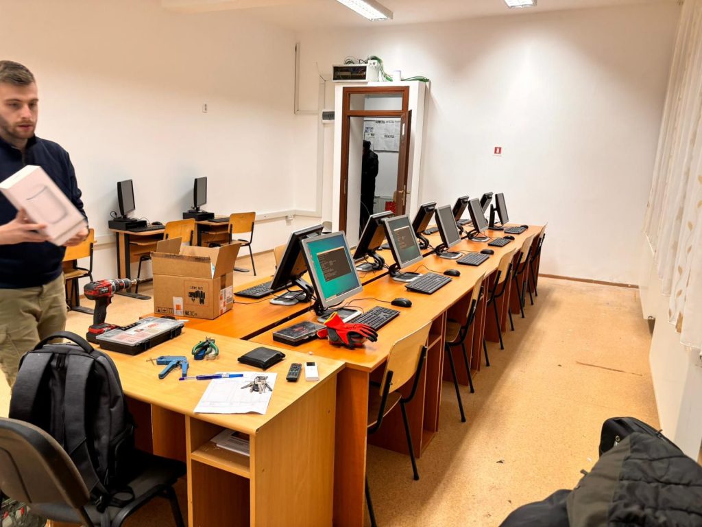 În cadrul acestei inițiative, au fost aduse calculatoare cu configurații superioare față de cele existente anterior, toate fiind configurate și pregătite pentru utilizare în activitățile didactice. Pentru a asigura o conectivitate stabilă și eficientă, a fost implementată atât o rețea cablată, cât și una wireless, care acoperă întreaga unitate de învățământ.